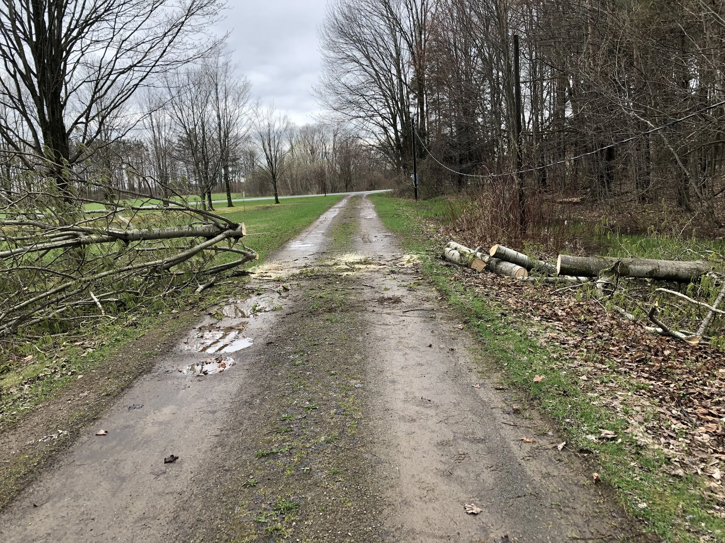 I was out in the barn when it happened—BOOM. I peaked outside the door and could see a giant tree had fallen across my driveway. “Shit.” I was preparing to head south for a weekend in New Jersey. In twenty minutes, I would have had the dogs packed into the van and we’d be on our way. Well, that was the plan.